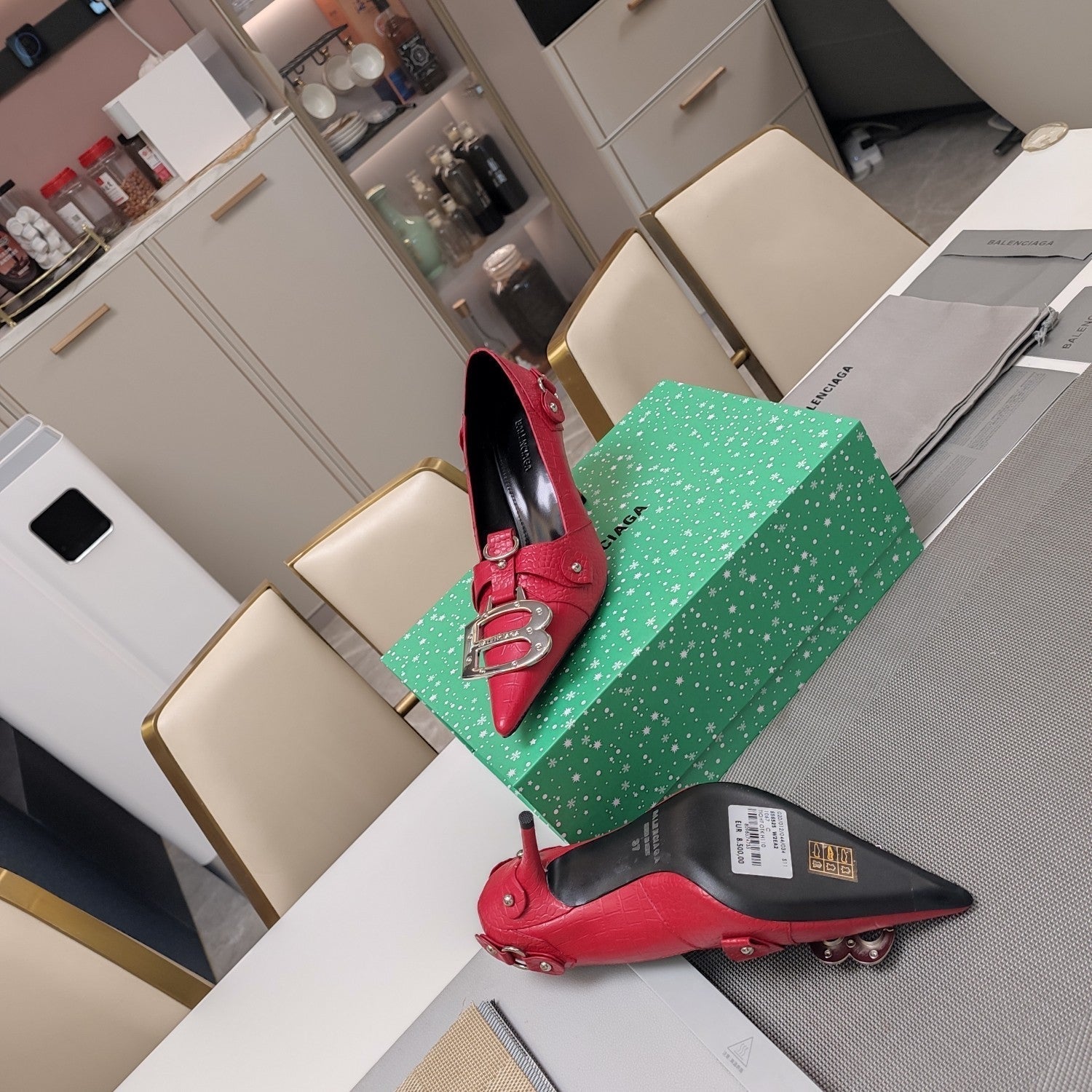 HIGH PUMPS WITH B SILVER BUCKLE IN RED CROCODILE PATTERN CALFSKIN