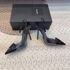 HIGH SLINGBACK IN BLACK GLOSSY CALFSKIN SPLICED WITH TPU