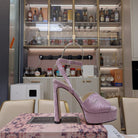 Jimmy 25 Platform Sandal Heels Lace Pink Satin Fabric 240014