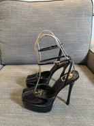 LA SCANDALE PLATFORM SANDALS IN BLACK GLOSSY CALFSKIN