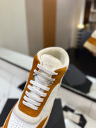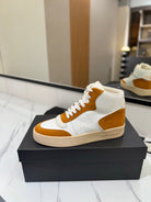 MID-TOP SNEAKERS IN WHITE PERFORATED LAMBSKIN AND BRONZE ORANGE SUEDE