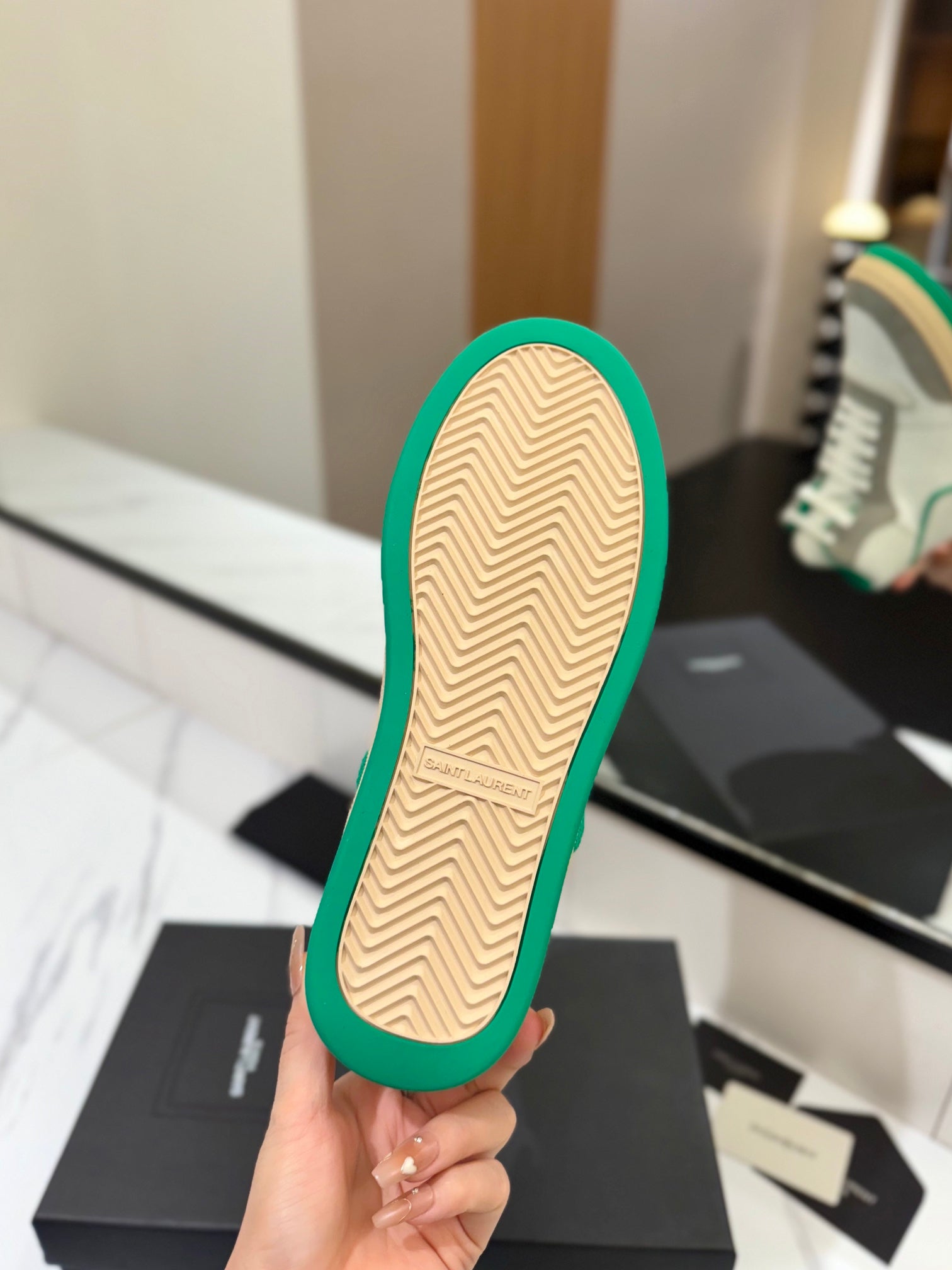 • Material: Perforated lambskin and suede