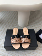 mule sandal beige calfskin glitter sequin