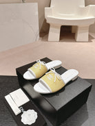 mule sandal striped yellow white canvas calfskin