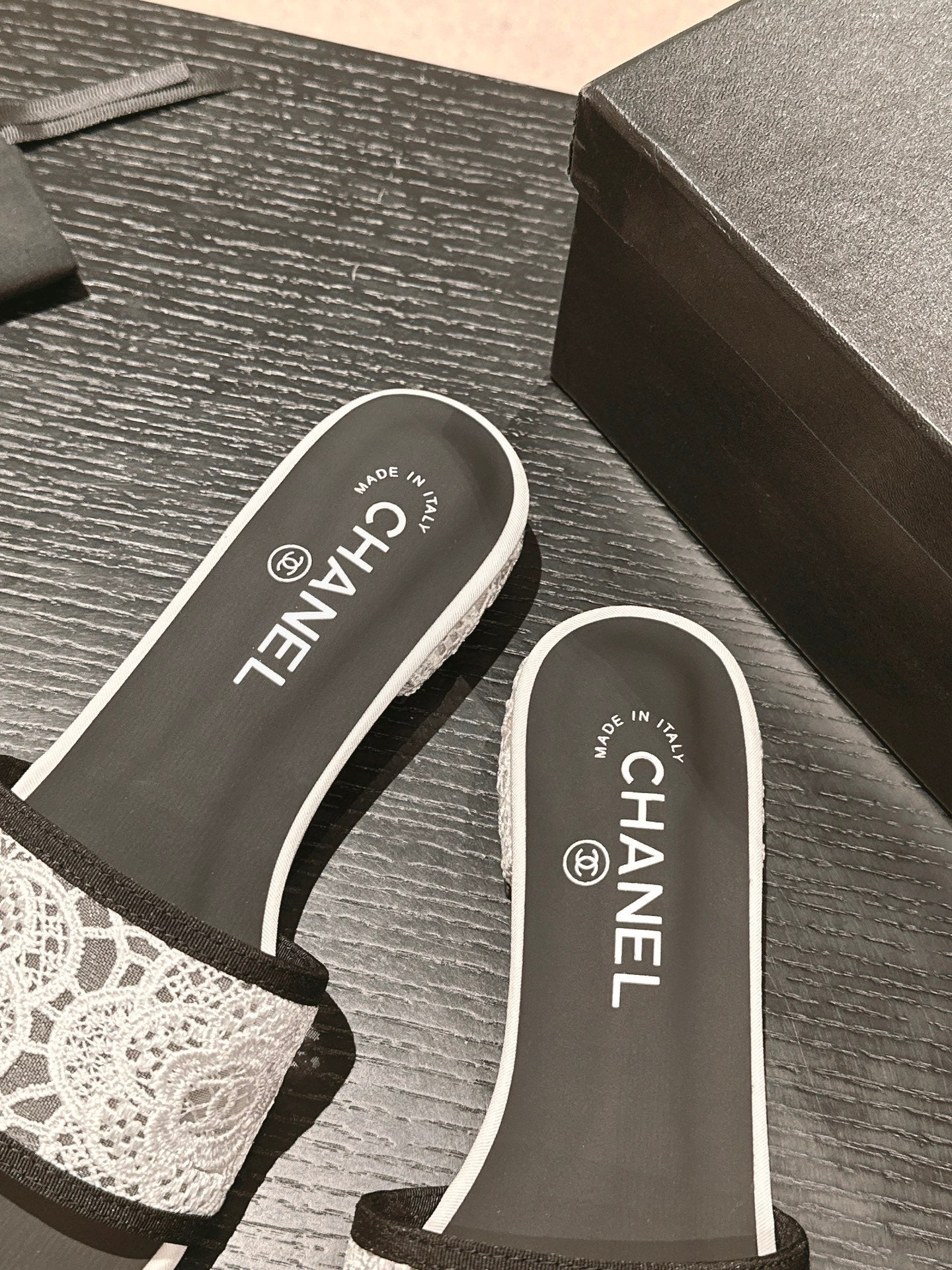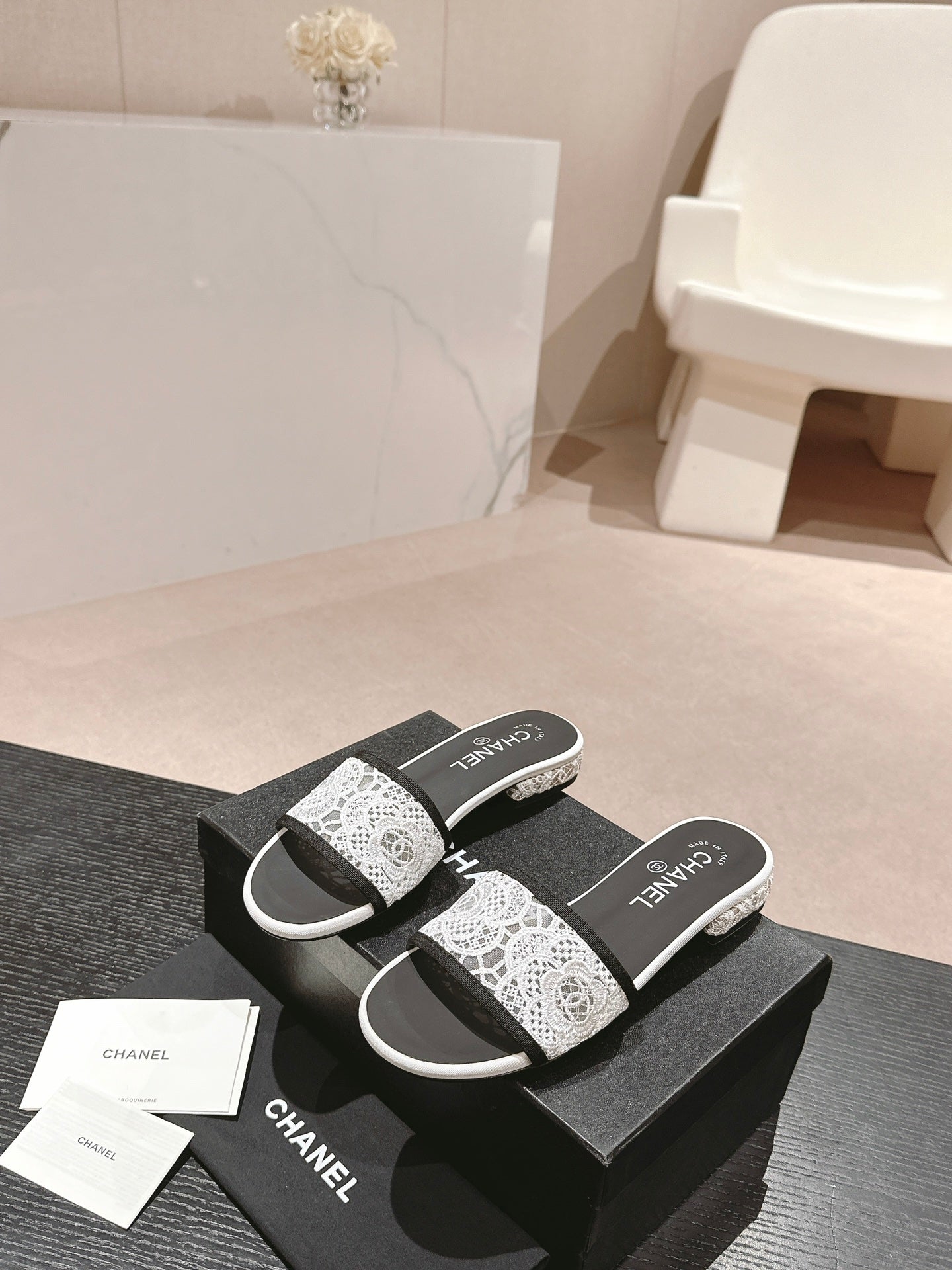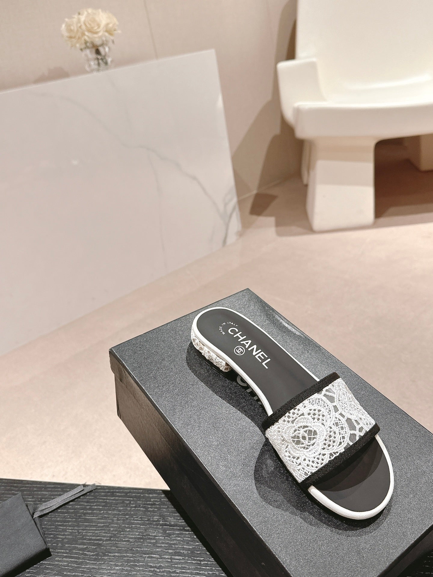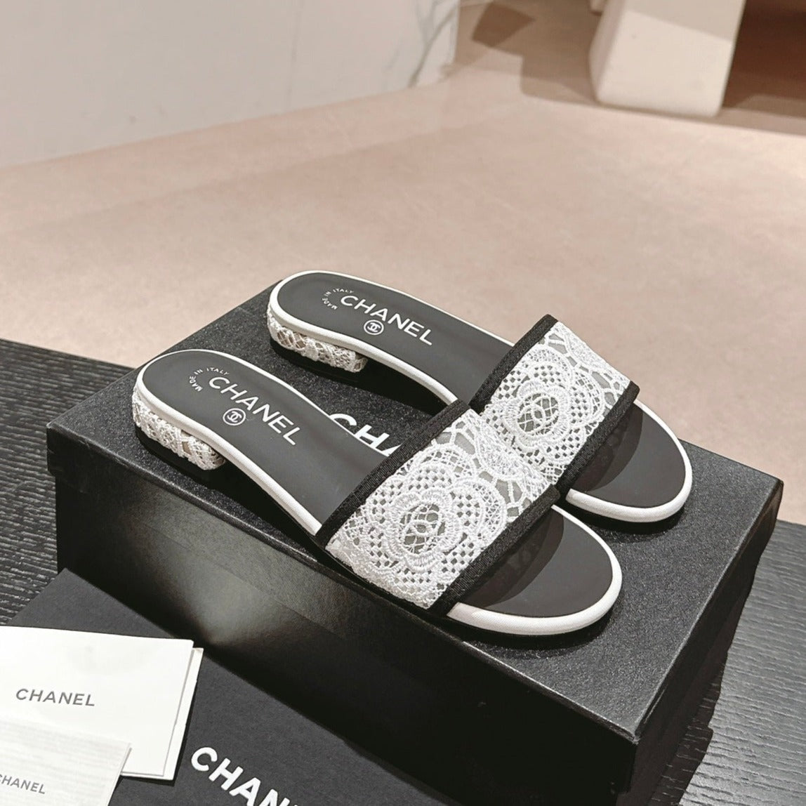 mule sandal white lace fabric