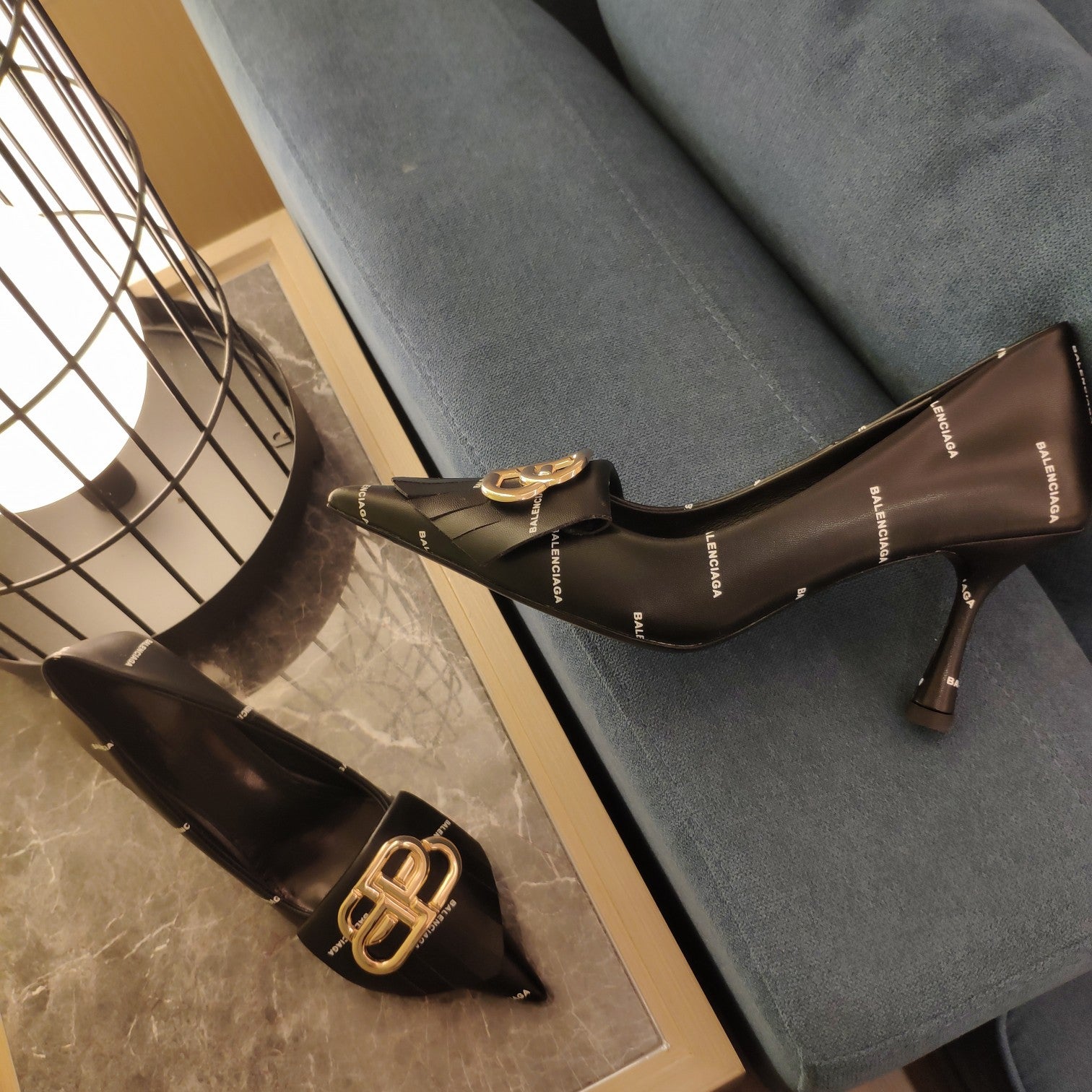 POINTED TOE PUMPS BLACK WITH LOGO PRINT SMOOTH CALFSKIN