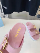 PRA STRAP SLIDES SANDALS PASTEL PINK SUEDE