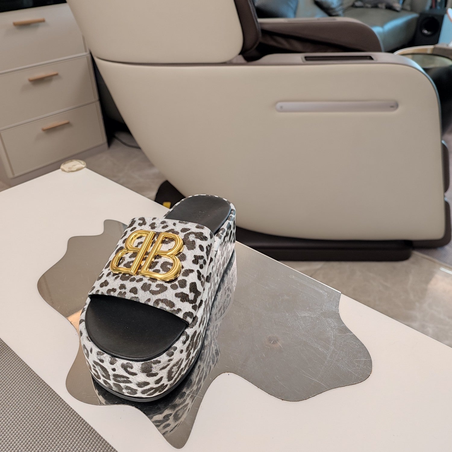 • Color: White leopard print