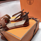 • Material: Sandal in Clafskin with straight cut edges, "H" cut-out detail and thin ankle strap.