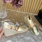 SL WEDGE SANDALS METALLIC GOLD CALFSKIN AND STRAW