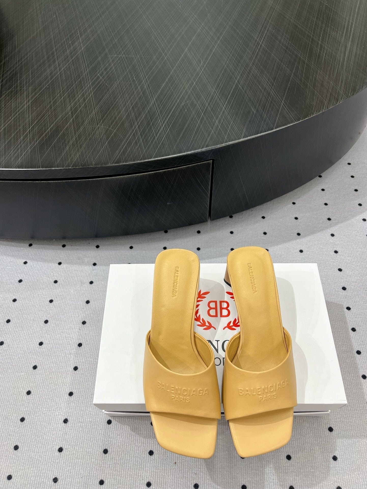 SQUARE-TOE MEDIUM HEEL MULES IN APACHE CALFSKIN LOGO EMBOSSED