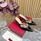Vlogo Signature with Crystals Cut-Out Slingback Pump 70 Black Beige Calfskin