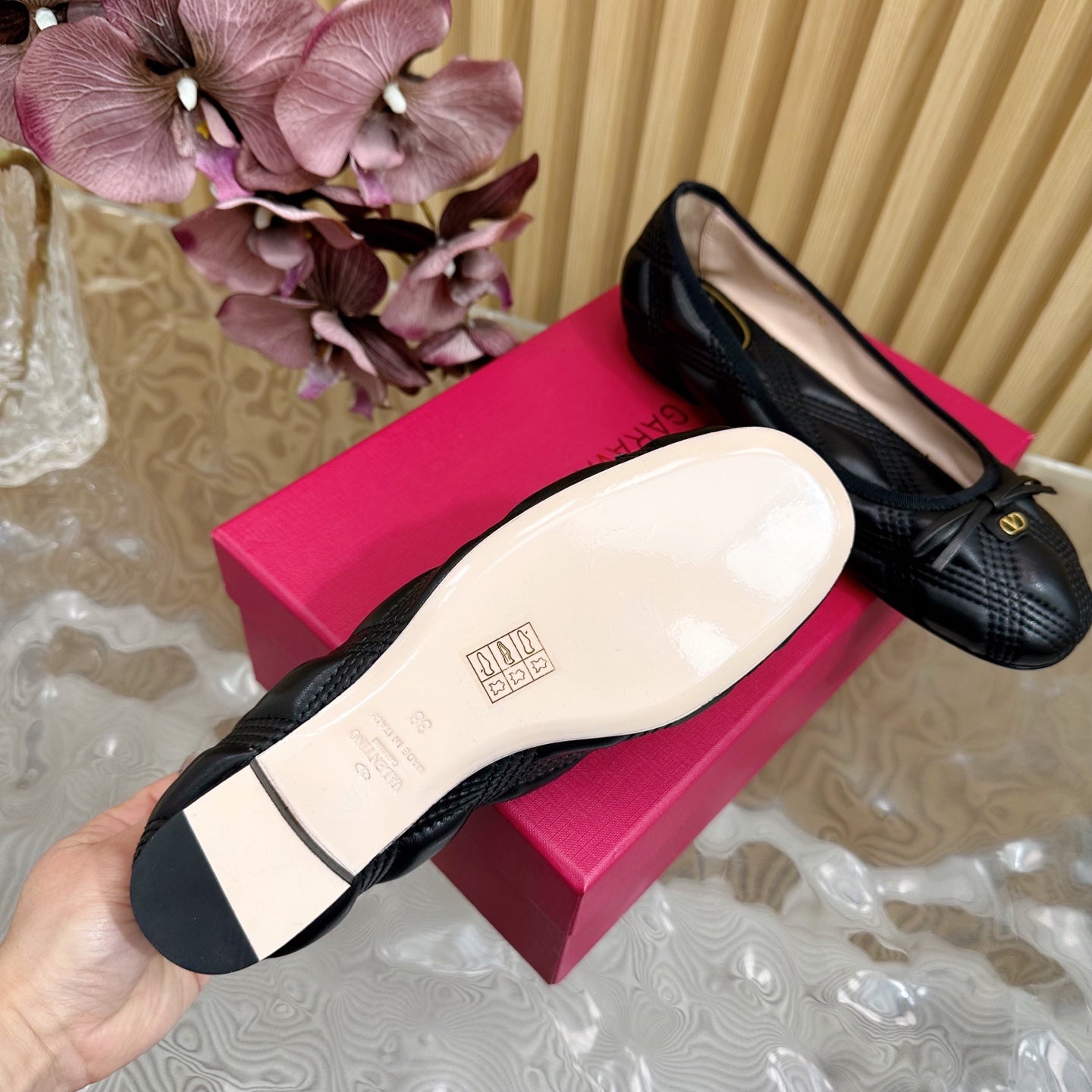 VT 2025 Quilted Leather Bow Ballerina Flats Black Sheepskin 286493