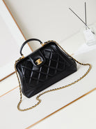 CC 24A Top Handle 23.5cm Black Wax Leather Gold Hardware 238469