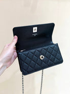 CC 25P Flap Bag Top Handle 18.5cm Black Grained Calfskin