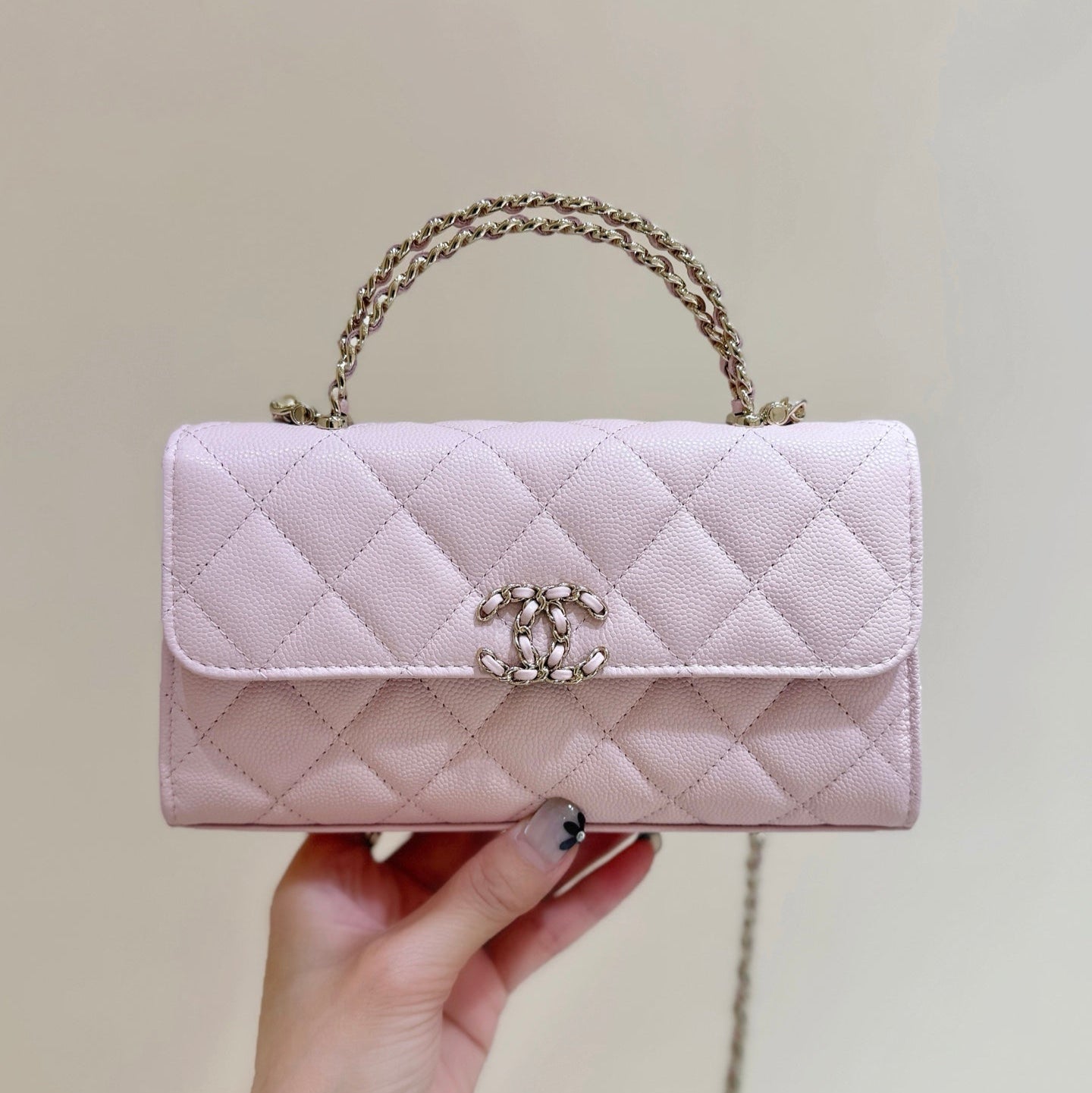 CC 25S Kelly Bag Top Handle 18cm Pink Grained Calfskin