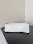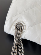 CRUSH CHAINED BAG 32 IN WHITE QUILTED CRUSHED CALFSKIN SILVER HARDWARE
