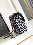 flap bag medium 25 black white sequin silver hardware