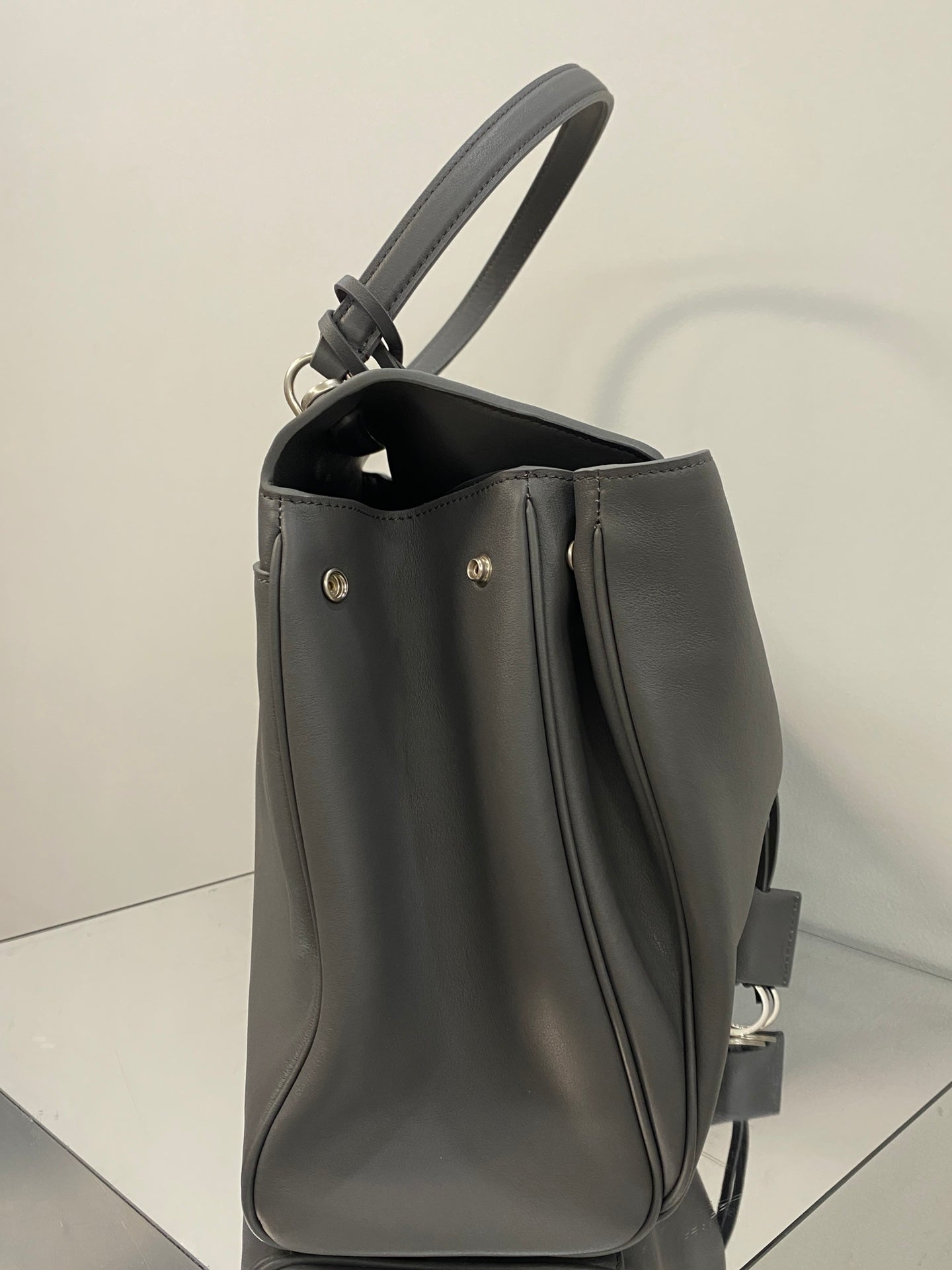 RODEO LARGE BAG 40 IN GREY SMOOTH CALFSKIN SILVER HARDWARE