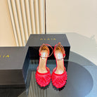ALAIA HIGH FISHNET PUMPS WITH STUDS IN CHERRY RED LYCRA MESH AND LAMBSKIN
