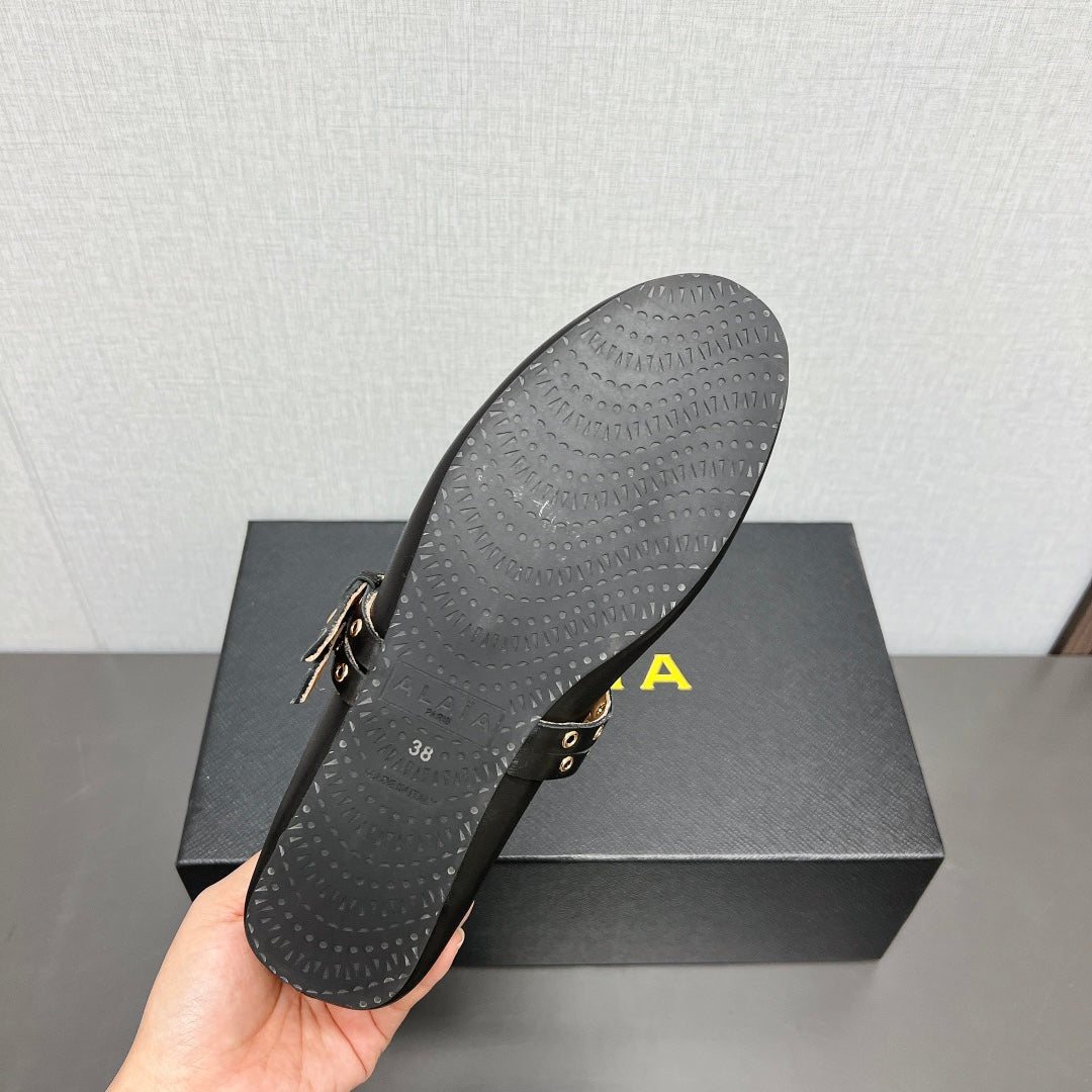 ALAIA MARY JANE SHOES IN BLACK LAMBSKIN SILVER HARDWARE