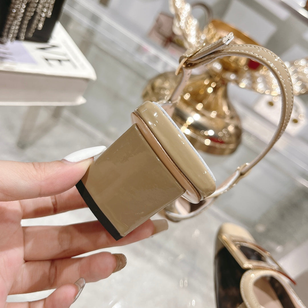 Belle Viv Metal Buckle Slingback Pumps 45 Camel Patent Leather