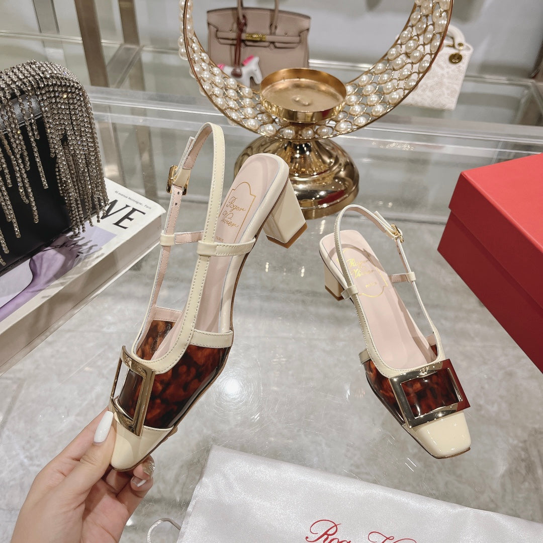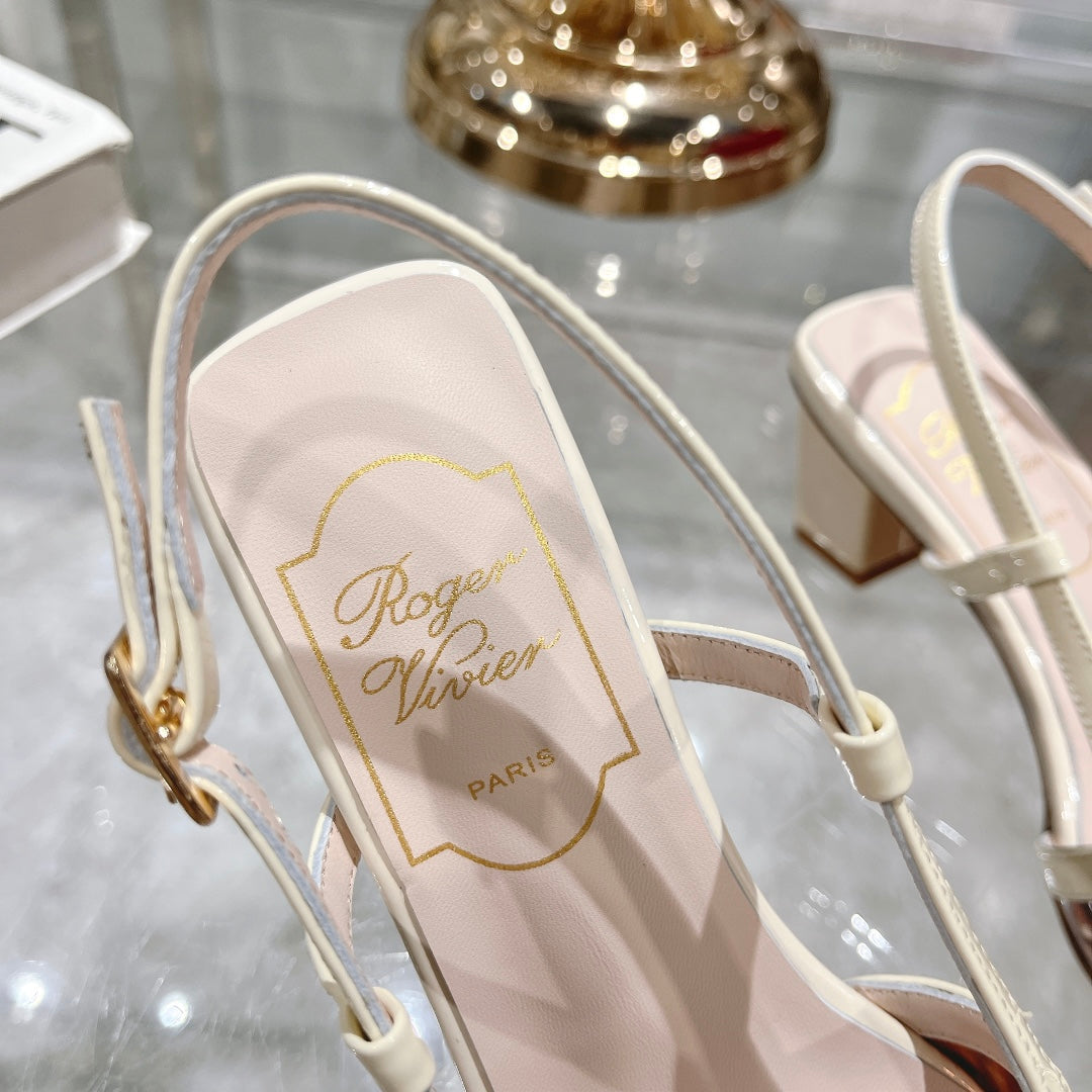 Belle Viv Metal Buckle Slingback Pumps 45 White Patent Leather
