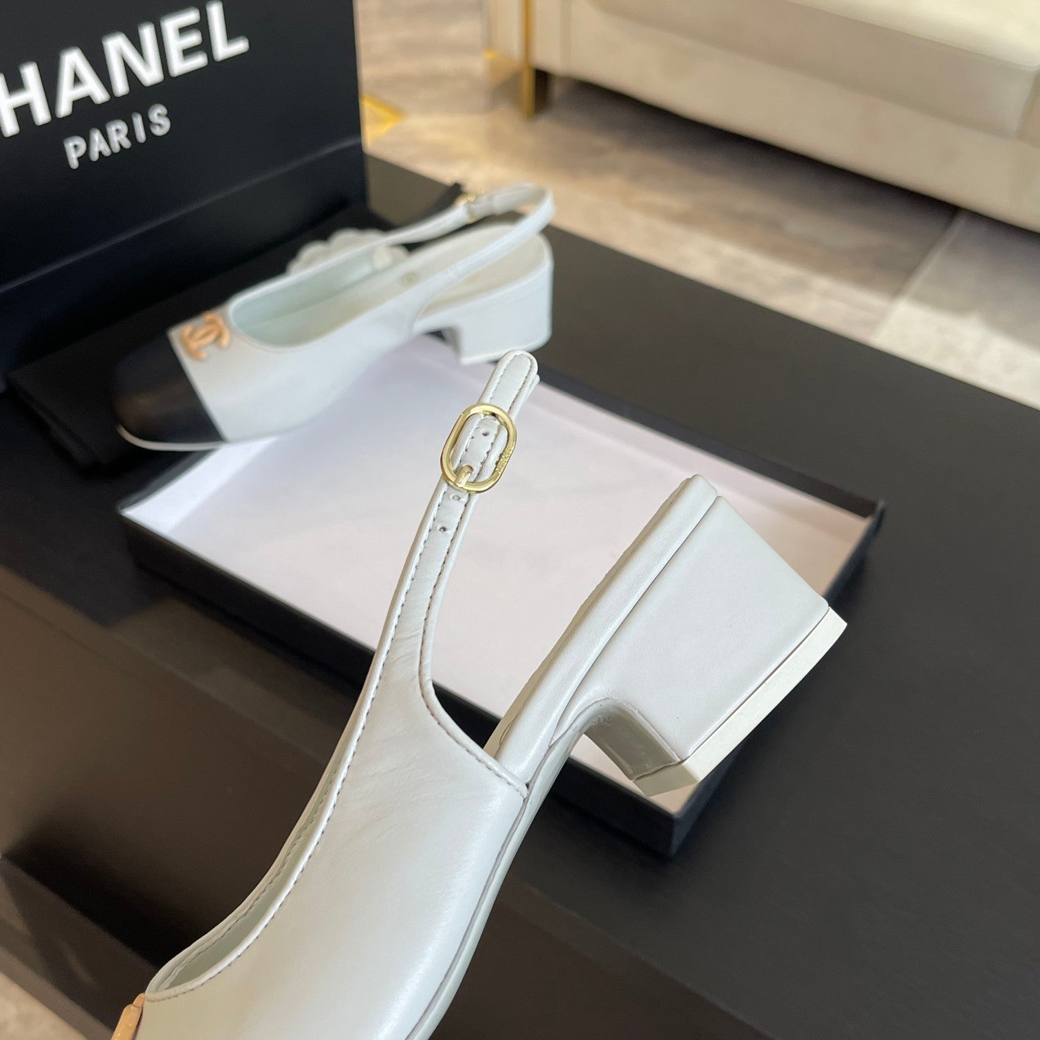 cc slingback 50 white black calfskin