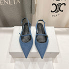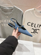 CELINE 25C Slingback Flat Demin Blue Fabric 236746