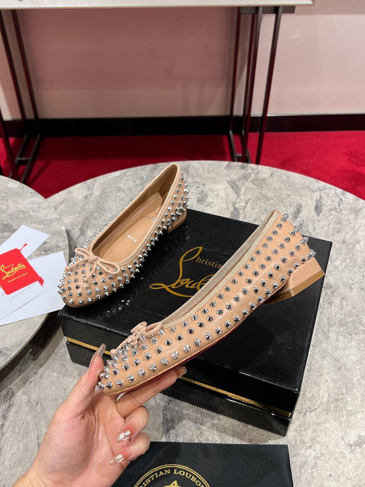 CL Sweetie Jane Spikes Ballerina Pump Nappa Leather Blush Beige