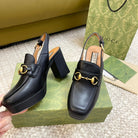 GG HIGH - HEEL SLINGBACK WITH HORSEBIT BLACK CALFSKIN