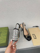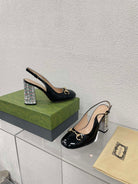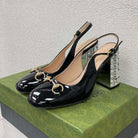 GG WOMEN'S HORSEBIT SLINGBACK 95MM IN BLACK CALFSKIN WITH RHINSTONES