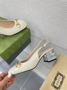 GG WOMEN'S HORSEBIT SLINGBACK IN WHITE CALFSKIN WITH RHINSTONES
