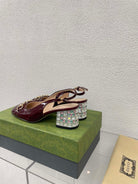 GG WOMEN'S HORSEBIT SLINGBACK IN WINE RED CALFSKIN WITH RHINSTONES
