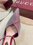 HIGH SLINGBACK 10 CM IN CHERRY RED SILK WITH FULL RHINSTONES