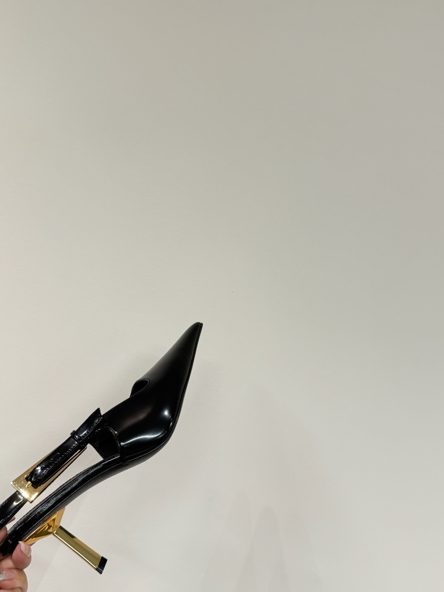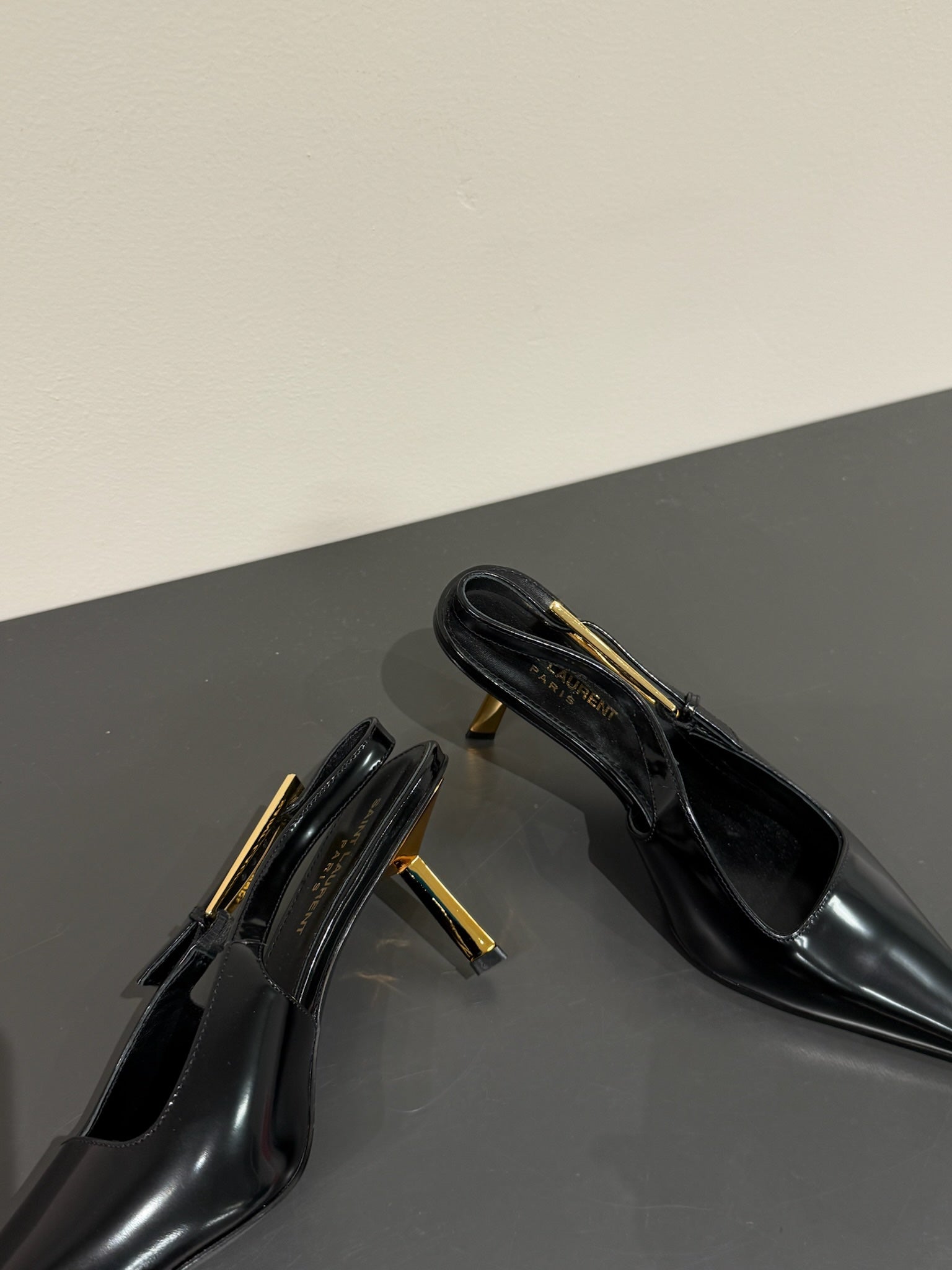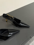 LEE SLINGBACK MID PUMPS IN BLACK SHINY CALFSKIN