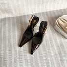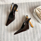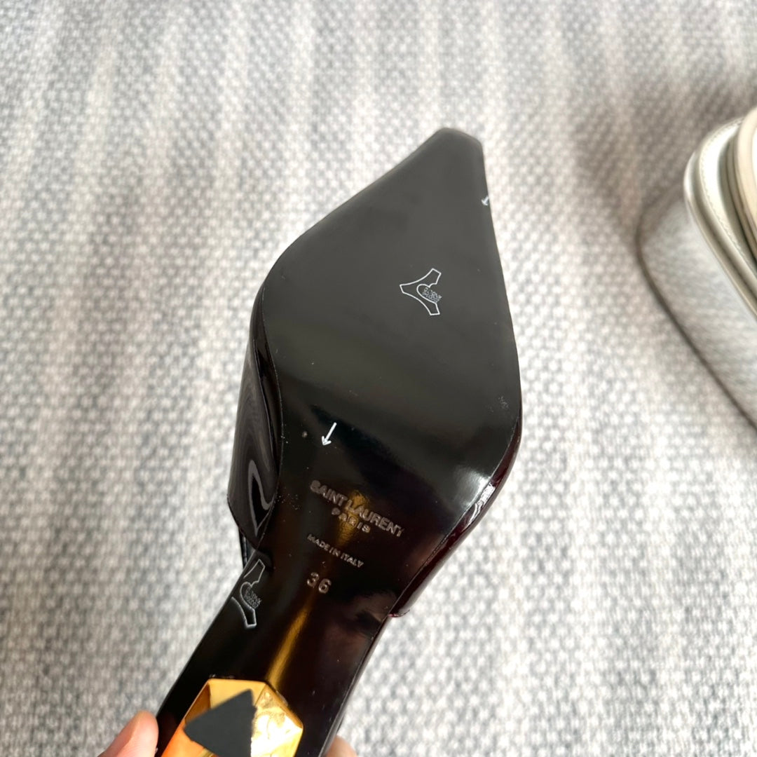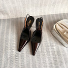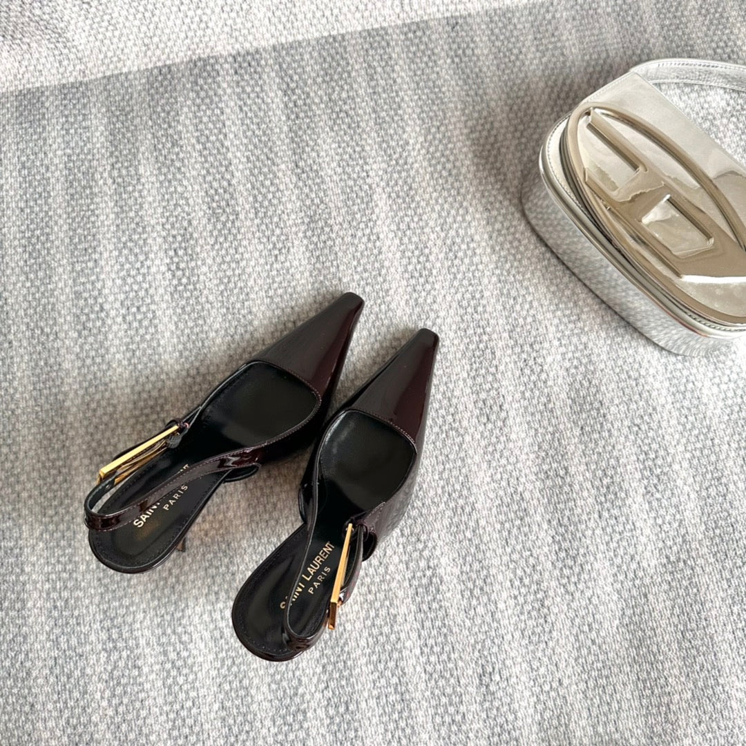 LEE SLINGBACK PUMPS 105 IN MAROON PATENT LEATHER GOLD HEEL