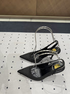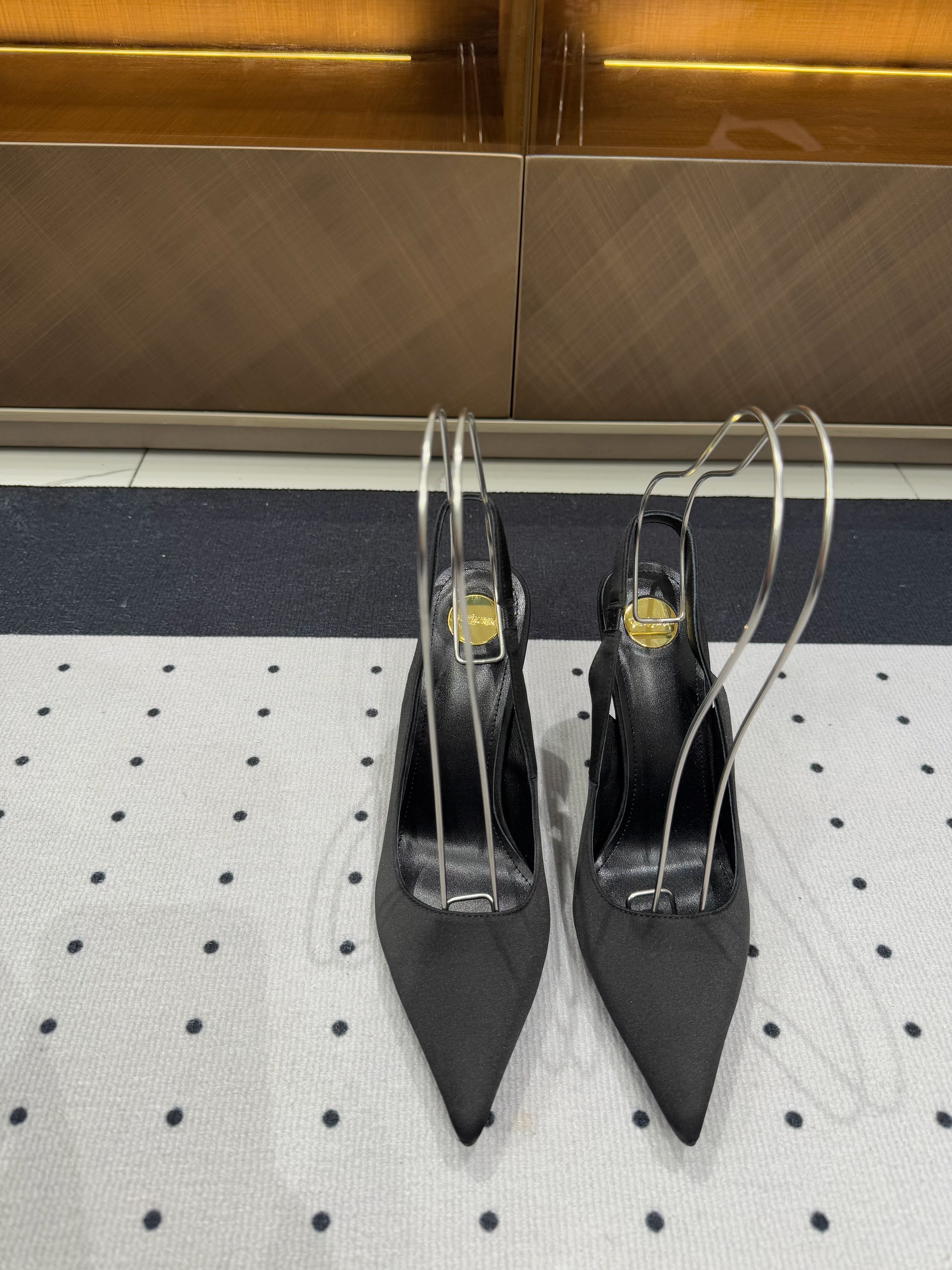 L'ENTRACTE SLINGBACK PUMPS IN BLACK SATIN
