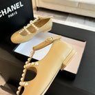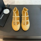 MARY JANES SHOES LIGHT YELLOW GOATSKIN WITH FAUX PEARL