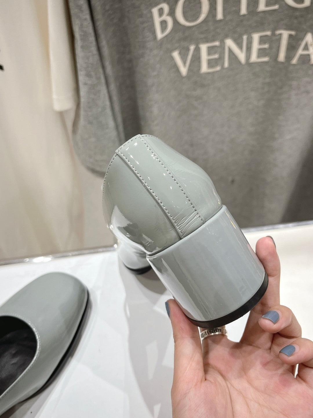 MEDIUM - HEEL MARY JANE SHOES IN SMOKE GREY GLOSSY CALFSKIN