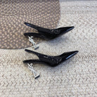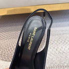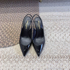 OPYUM SILVER HEEL SLINGBACK PUMPS IN BLACK GLOSSY CALFSKIN