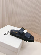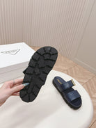 PRA CROCODILE MOTIF SLIDES SANDALS NAVY CALFSKIN