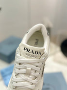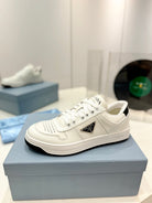 PRA DOWNTOWN PERFORATED SNEAKERS WHITE AND BLACK LOGO CALFSKIN
