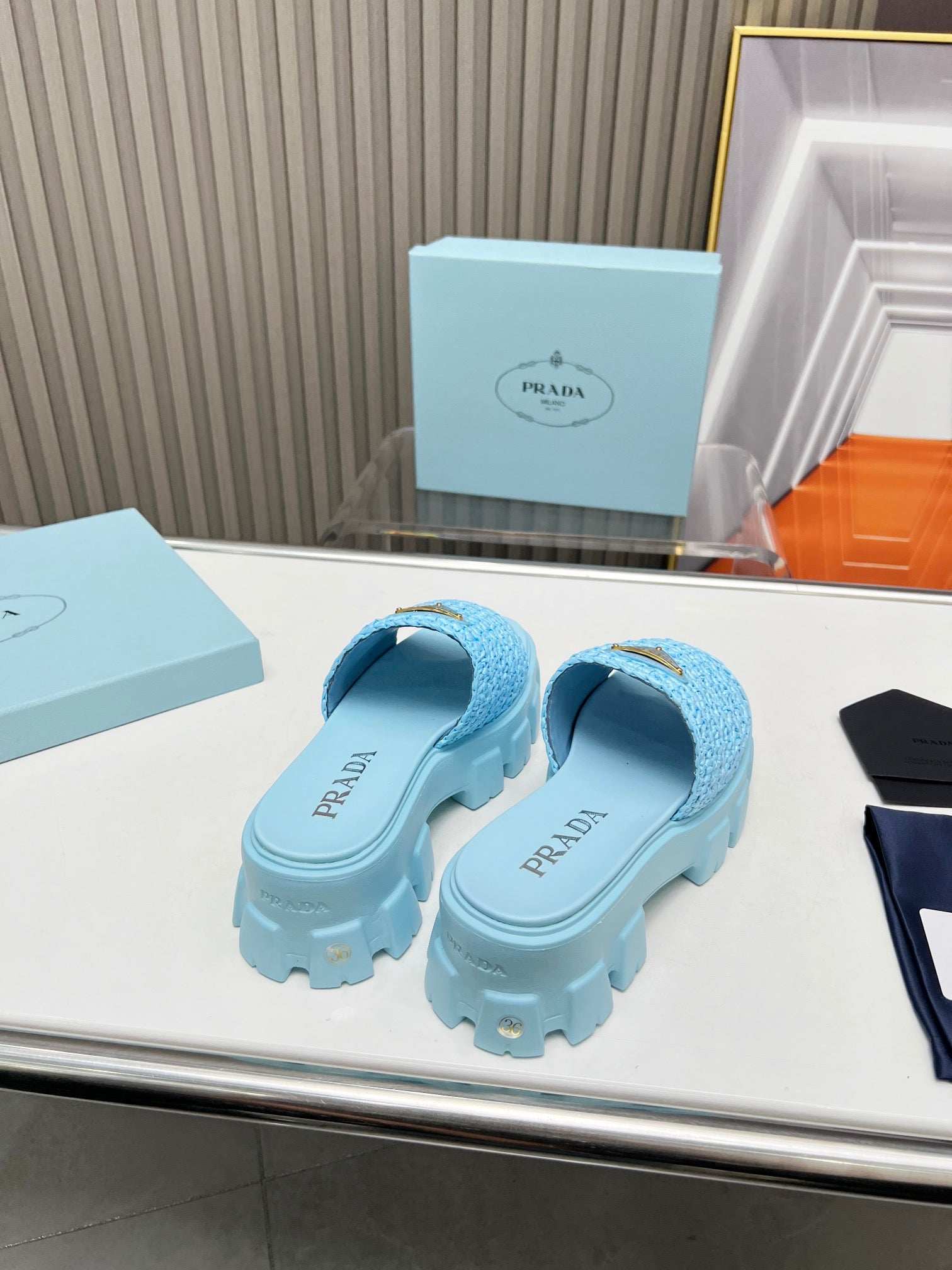 PRA THICK-SOLED CROCHET SANDALS SKY WOVEN FABRIC