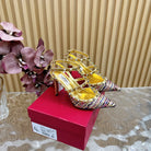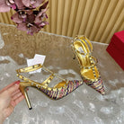 Rockstud Pump In Colorful Mix Gold Pied-de-poule Fabric And Cowhide 95mm 102079