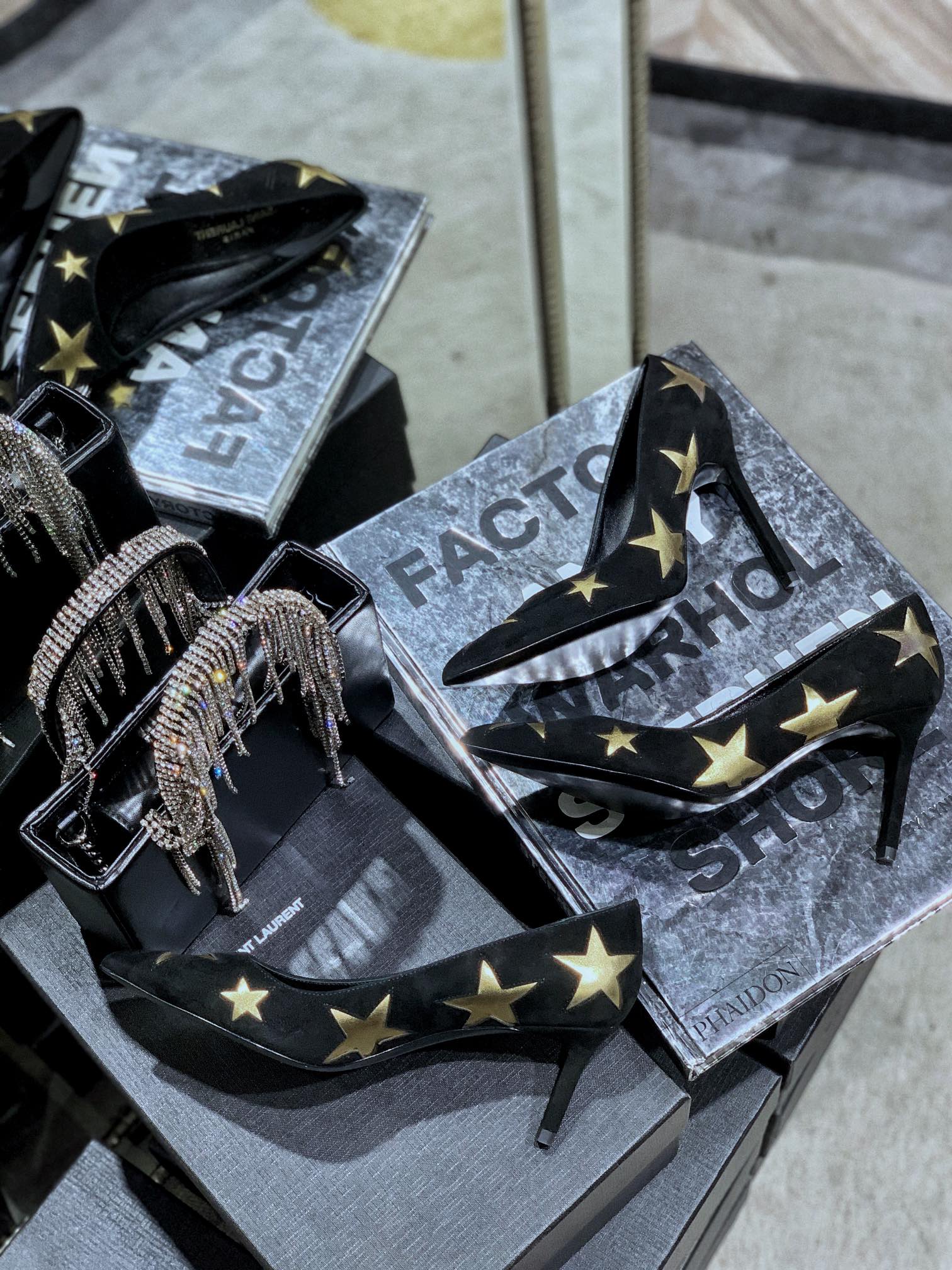 SL CHARLOTTE GOLD STAR PUMPS BLACK SUEDE