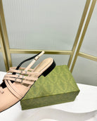 STRAPPY FLAT SLINGBACK IN BEIGE CREAM GLOSSY CALFSKIN