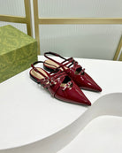 STRAPPY FLAT SLINGBACK IN SCARLET RED GLOSSY CALFSKIN