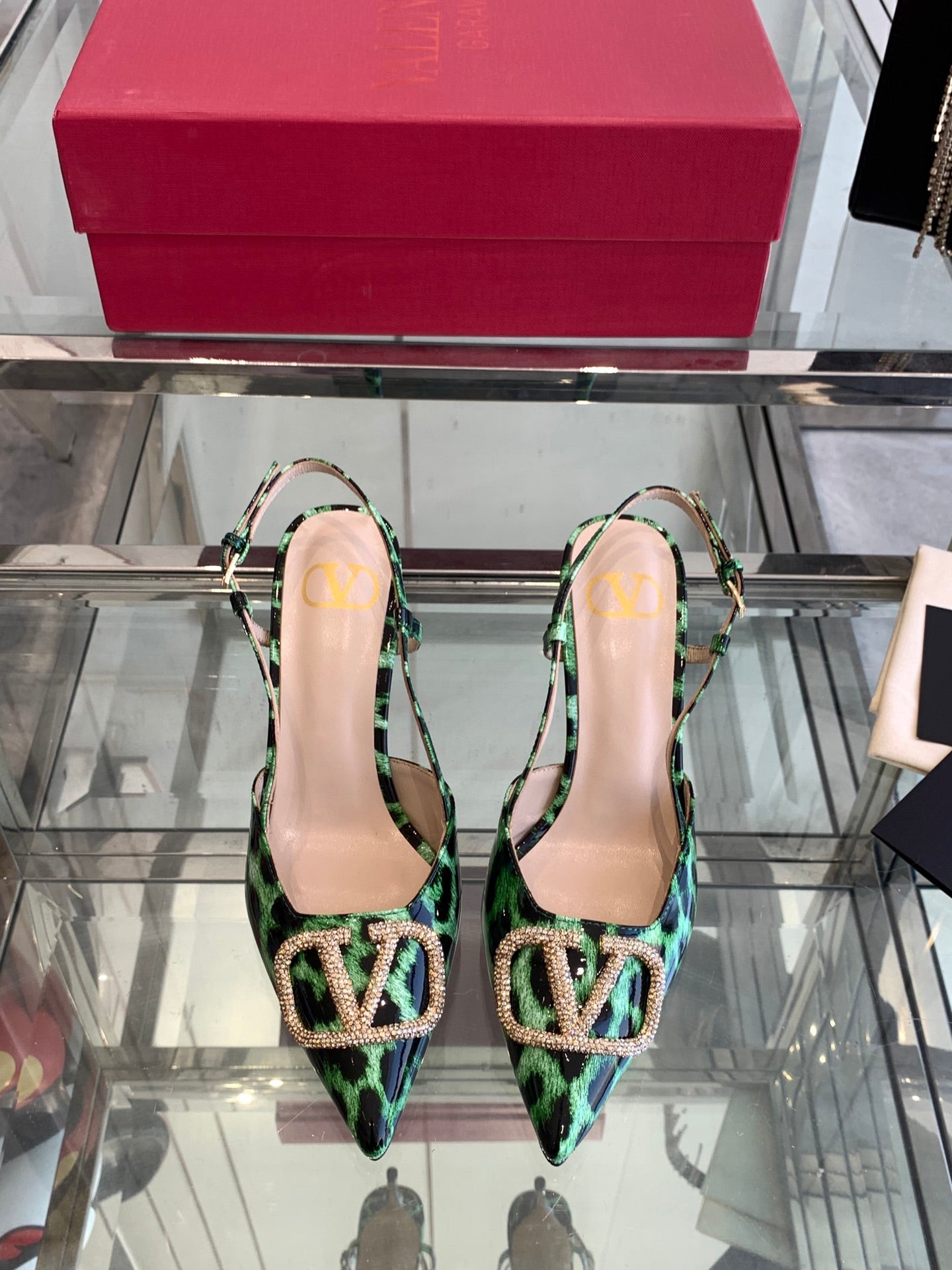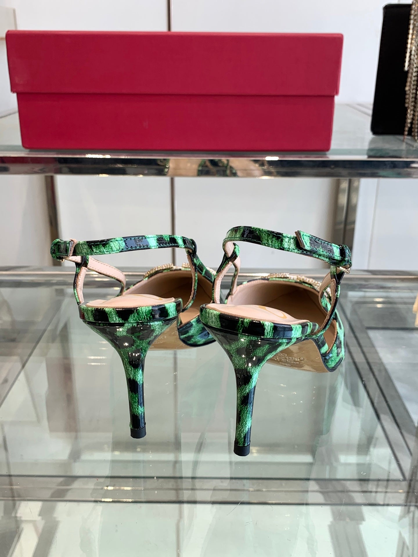 VT 25 High Heels Slingbacks Green Leopard Cowhide 292347