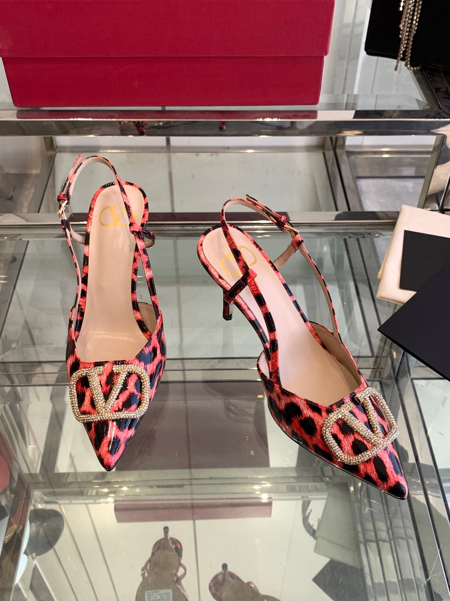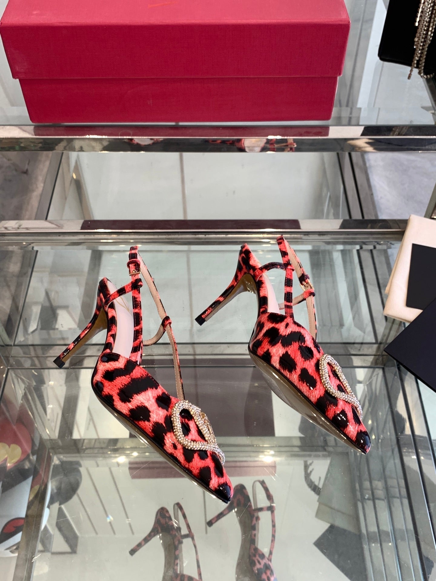 VT 25 High Heels Slingbacks Red Leopard Cowhide 292346